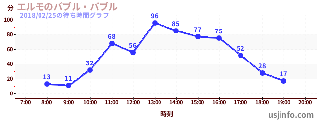 • エルモのバブル・バブル$B$N(B2018年02月25日の待ち時間