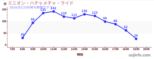 • ミニオン・ハチャメチャ・ライド$B$N(B2018年02月25日の待ち時間