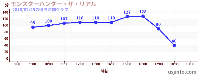 • モンスターハンター・ザ・リアル$B$N(B2018年02月25日の待ち時間
