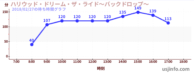 • ハリウッド・ドリーム・ザ・ライド〜バックドロップ〜$B$N(B2018年02月27日の待ち時間