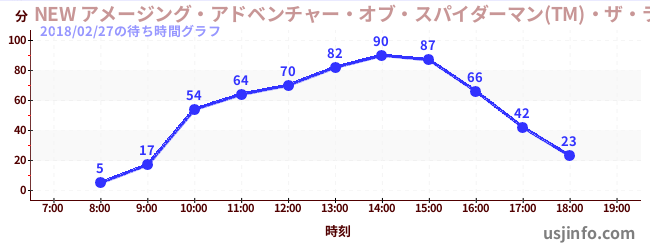 • NEW アメージング・アドベンチャー・オブ・スパイダーマン(TM)・ザ・ライド 4K3D$B$N(B2018年02月27日の待ち時間