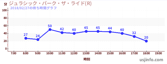 • ジュラシック・パーク・ザ・ライド(R)$B$N(B2018年02月27日の待ち時間