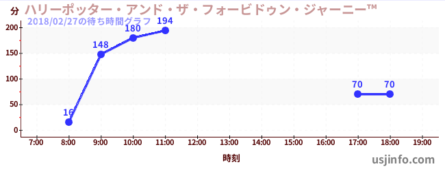 • ハリーポッター・アンド・ザ・フォービドゥン・ジャーニー™$B$N(B2018年02月27日の待ち時間
