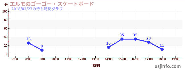 • エルモのゴーゴー・スケートボード$B$N(B2018年02月27日の待ち時間