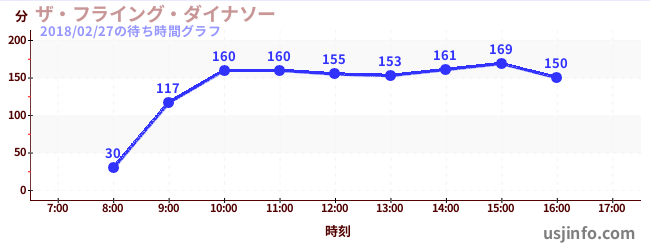 • ザ・フライング・ダイナソー$B$N(B2018年02月27日の待ち時間