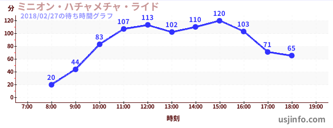 • ミニオン・ハチャメチャ・ライド$B$N(B2018年02月27日の待ち時間
