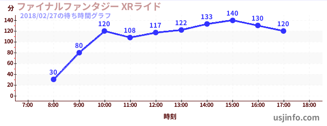 • ファイナルファンタジー XRライド$B$N(B2018年02月27日の待ち時間