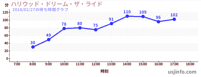 • ハリウッド・ドリーム・ザ・ライド$B$N(B2018年02月27日の待ち時間