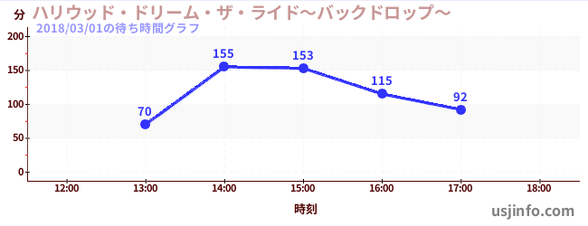 • ハリウッド・ドリーム・ザ・ライド〜バックドロップ〜$B$N(B2018年03月01日の待ち時間