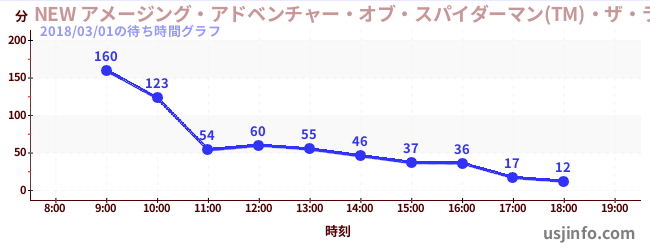• NEW アメージング・アドベンチャー・オブ・スパイダーマン(TM)・ザ・ライド 4K3D$B$N(B2018年03月01日の待ち時間