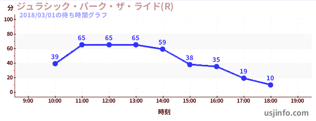 • ジュラシック・パーク・ザ・ライド(R)$B$N(B2018年03月01日の待ち時間