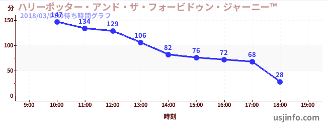• ハリーポッター・アンド・ザ・フォービドゥン・ジャーニー™$B$N(B2018年03月01日の待ち時間