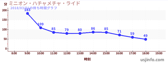 • ミニオン・ハチャメチャ・ライド$B$N(B2018年03月01日の待ち時間