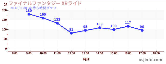 • ファイナルファンタジー XRライド$B$N(B2018年03月01日の待ち時間