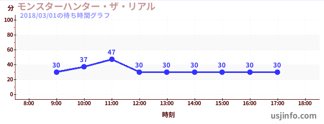 • モンスターハンター・ザ・リアル$B$N(B2018年03月01日の待ち時間