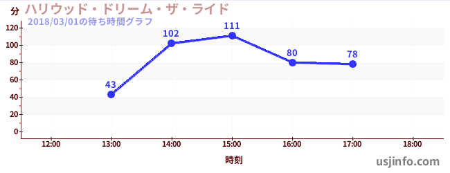 • ハリウッド・ドリーム・ザ・ライド$B$N(B2018年03月01日の待ち時間