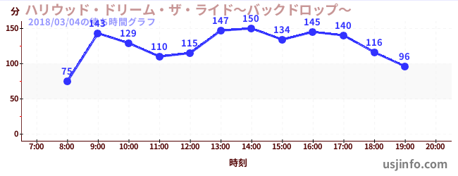 • ハリウッド・ドリーム・ザ・ライド〜バックドロップ〜$B$N(B2018年03月04日の待ち時間