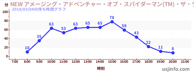 • NEW アメージング・アドベンチャー・オブ・スパイダーマン(TM)・ザ・ライド 4K3D$B$N(B2018年03月04日の待ち時間
