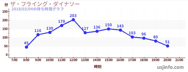 • ザ・フライング・ダイナソー$B$N(B2018年03月04日の待ち時間