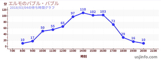 • エルモのバブル・バブル$B$N(B2018年03月04日の待ち時間