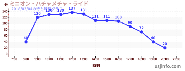 • ミニオン・ハチャメチャ・ライド$B$N(B2018年03月04日の待ち時間
