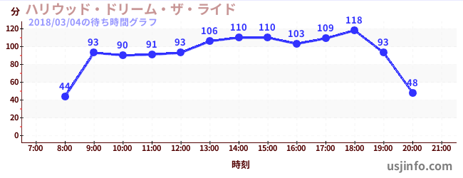 • ハリウッド・ドリーム・ザ・ライド$B$N(B2018年03月04日の待ち時間