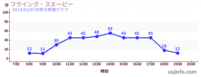 • フライング・スヌーピー$B$N(B2018年03月07日の待ち時間