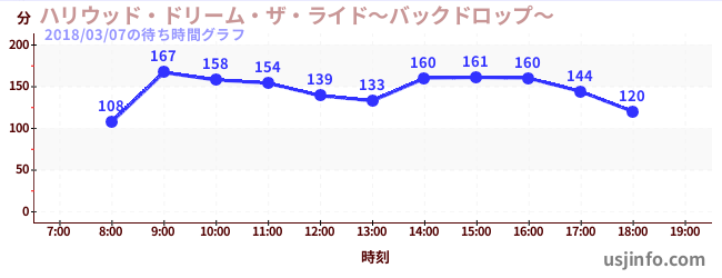 • ハリウッド・ドリーム・ザ・ライド〜バックドロップ〜$B$N(B2018年03月07日の待ち時間