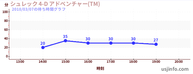 • シュレック 4-D アドベンチャー(TM)$B$N(B2018年03月07日の待ち時間