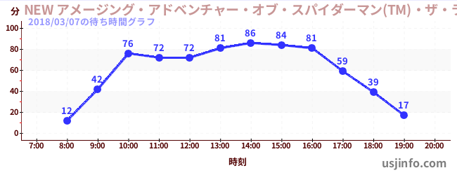 • NEW アメージング・アドベンチャー・オブ・スパイダーマン(TM)・ザ・ライド 4K3D$B$N(B2018年03月07日の待ち時間