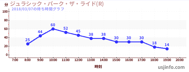 • ジュラシック・パーク・ザ・ライド(R)$B$N(B2018年03月07日の待ち時間