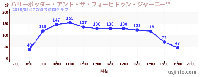 • ハリーポッター・アンド・ザ・フォービドゥン・ジャーニー™$B$N(B2018年03月07日の待ち時間