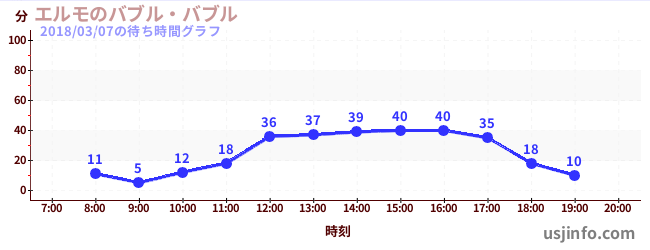 • エルモのバブル・バブル$B$N(B2018年03月07日の待ち時間