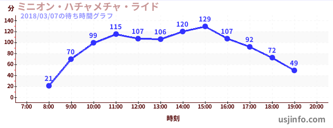 • ミニオン・ハチャメチャ・ライド$B$N(B2018年03月07日の待ち時間