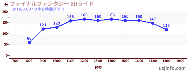 • ファイナルファンタジー XRライド$B$N(B2018年03月07日の待ち時間