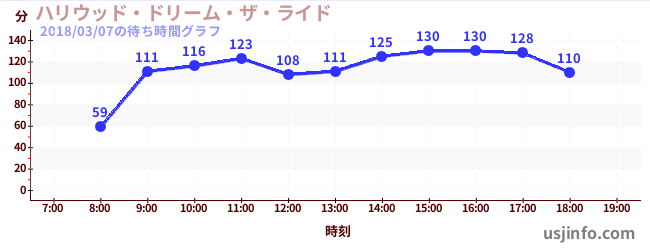 • ハリウッド・ドリーム・ザ・ライド$B$N(B2018年03月07日の待ち時間