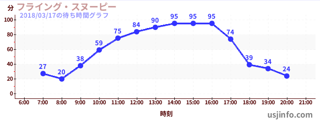 • フライング・スヌーピー$B$N(B2018年03月17日の待ち時間