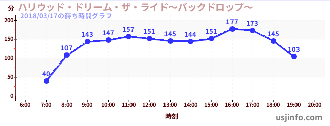 • ハリウッド・ドリーム・ザ・ライド〜バックドロップ〜$B$N(B2018年03月17日の待ち時間