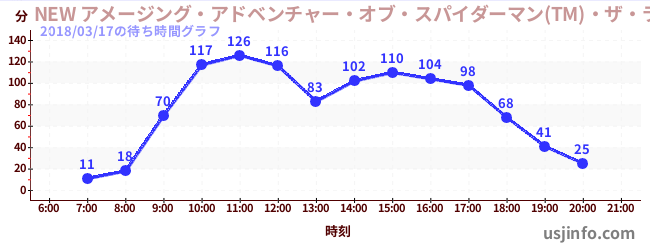 • NEW アメージング・アドベンチャー・オブ・スパイダーマン(TM)・ザ・ライド 4K3D$B$N(B2018年03月17日の待ち時間