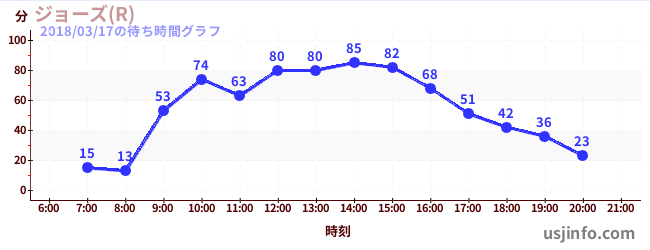 • ジョーズ(R)$B$N(B2018年03月17日の待ち時間