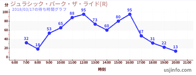 • ジュラシック・パーク・ザ・ライド(R)$B$N(B2018年03月17日の待ち時間