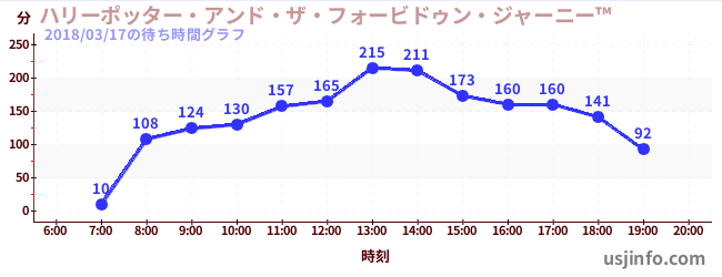 • ハリーポッター・アンド・ザ・フォービドゥン・ジャーニー™$B$N(B2018年03月17日の待ち時間