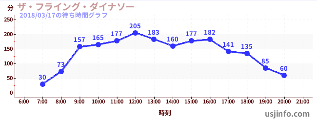 • ザ・フライング・ダイナソー$B$N(B2018年03月17日の待ち時間