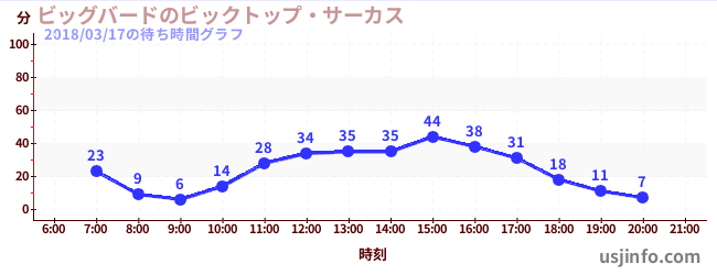 • ビッグバードのビックトップ・サーカス$B$N(B2018年03月17日の待ち時間