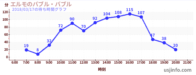 • エルモのバブル・バブル$B$N(B2018年03月17日の待ち時間