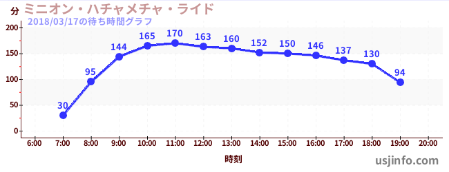 • ミニオン・ハチャメチャ・ライド$B$N(B2018年03月17日の待ち時間
