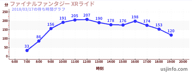 • ファイナルファンタジー XRライド$B$N(B2018年03月17日の待ち時間
