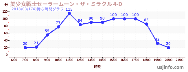 • 美少女戦士セーラームーン・ザ・ミラクル 4-D$B$N(B2018年03月17日の待ち時間