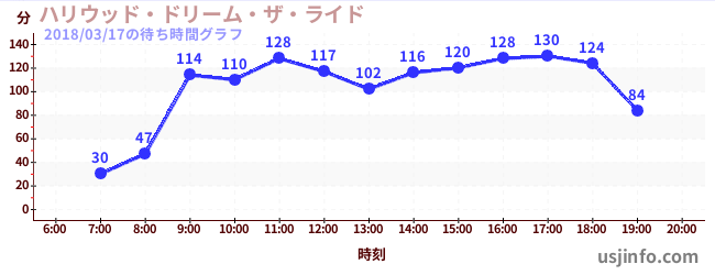 • ハリウッド・ドリーム・ザ・ライド$B$N(B2018年03月17日の待ち時間