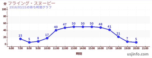 • フライング・スヌーピー$B$N(B2018年03月21日の待ち時間